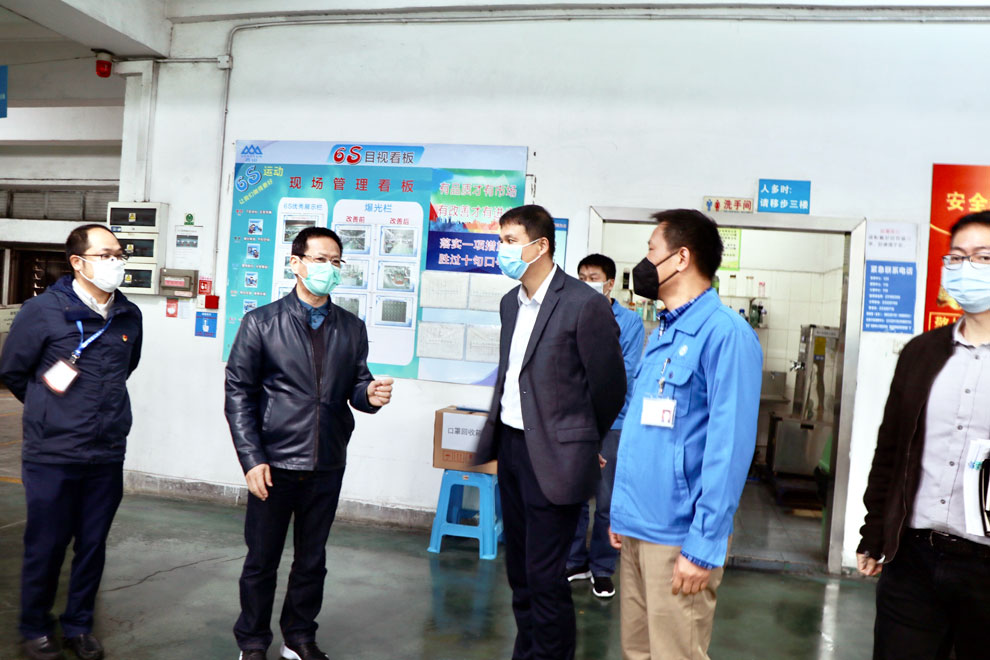 2月13日上午,中山市東區黨工委書記周俊峰一行深入香山股份檢查督導疫情防控和復工復產工作。香山股份董事長趙玉昆、總裁王咸車、監事會主席陳博等陪同檢查。
