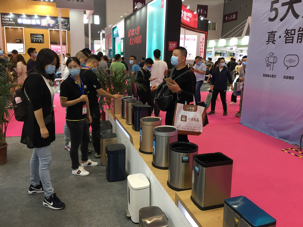 本屆展位最大的驚喜就是近20款超邦智能垃圾桶的驚艷亮相,作為香山股份旗下子品牌超邦,一直推行“美好生活研究所”的優活概念,為都市人忙碌的生活做智能減法。香山自主研發的智能垃圾桶的出現,照顧到居家垃圾的清理習慣,可以說是香山智能家居的又一個里程碑。本次展出的智能垃圾桶,多選用410不銹鋼工藝,創新封油技術,能有效抵抗殘留指紋、油污等。另選用進口智能芯片,有效延長續航時間。產品機身感應覆蓋360°無死角,任意觸碰均可智能開蓋,5S后自動關閉。靜音開合,減少生活噪音。富有流線型的外觀,智能的操作,讓智能垃圾桶成為本次展會的新寵,進來體驗、詢價的客戶不斷,掀起一輪新高潮。