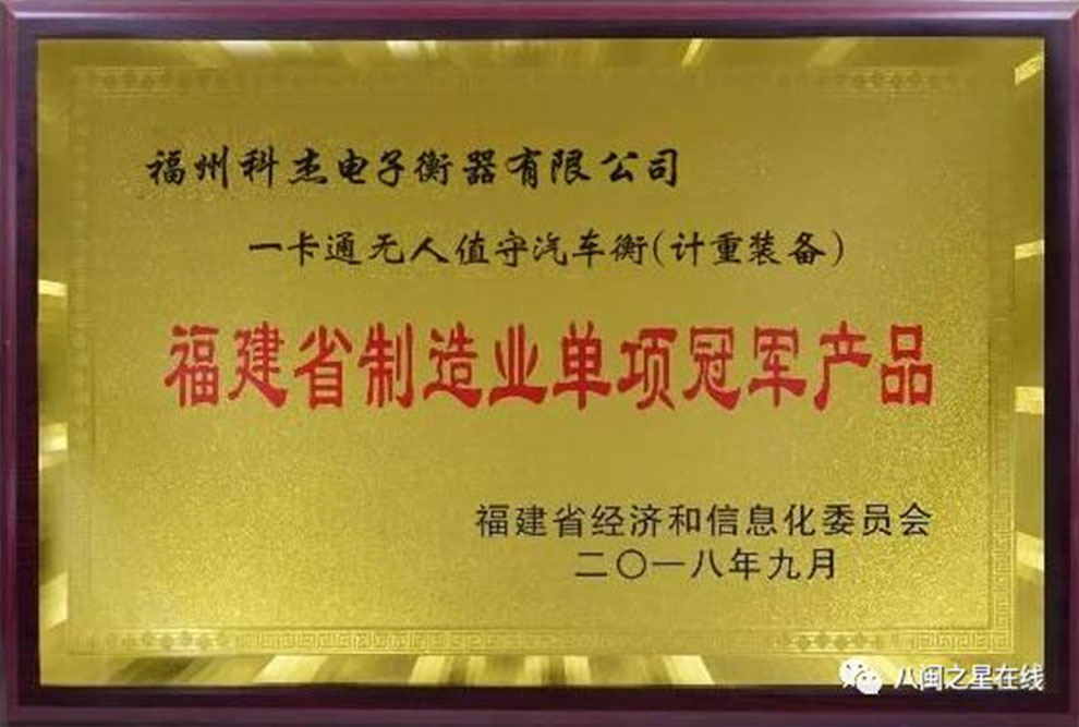 近年來,福州科杰電子衡器有限公司突破傳統衡器企業發展的瓶頸,由傳統衡器制造廠向物料智能化管理系統整體解決方案供應商轉變,已成為尖端智能化稱重系統集成商,實現了企業向高端裝備制造業的轉型升級,取得了豐碩成果,公司產品取得25多項專利技術,6項軟件著作權,產品榮獲2017年福建省優秀物聯網和智能硬件優秀創新獎,獲國家高新技術企業認定,并取得福州專利技術示范企業。2018年公司《汽車衡稱重平臺制造數字化車間》順利入選2018年福建省智能制造專項企業名錄,2020年公司《兩化融合稱重系統項目管理云平臺》 入選福建省第一批“互聯網+先進制造業”重點項目。