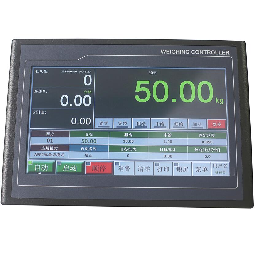 定量包裝秤[單秤]用。應用模式可選:單斗秤、單袋秤與減量秤