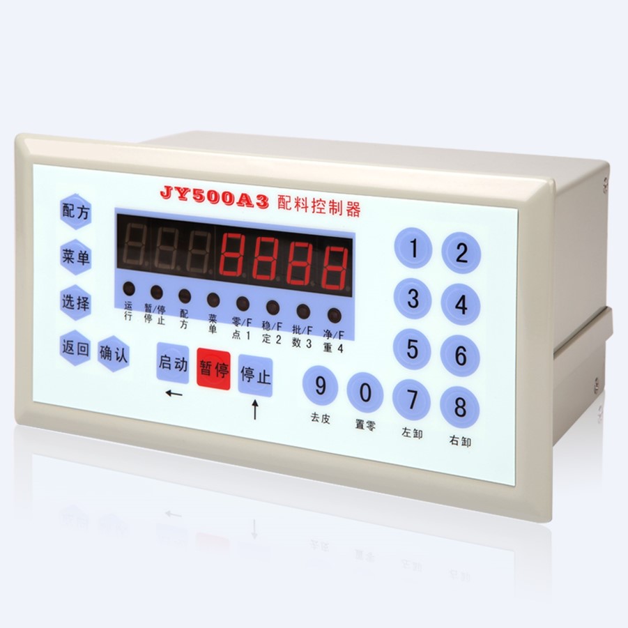 JY500A3系列配料控制器適合于在同一個稱料斗內累積加配多種物料的配料裝置中作為控制部件。