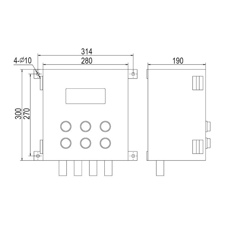 XK3190-Ex-C602G外殼采用鋁合金鑄造成型,外表面噴塑。整體為隔爆腔體型式,正面設(shè)有鋼化玻璃視窗,供觀察儀表顯示數(shù)據(jù)。箱面設(shè)有控制操作按鍵。下部為電纜引入接頭。